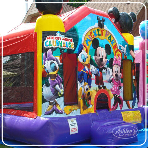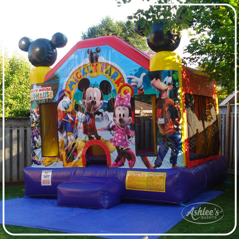 Looking to create a magical party experience for your little one? Look no further than the Mickey Mouse Bouncy Castle! This official Disney-licensed bouncer is sure to be a BIG hit with all the young guests at your next celebration. Mickey and all his friends are in attendance, ready to bring joy and laughter to the party. From the moment they step inside, your little ones will be transported to the magical world of Disney. Imaginations will soar as they bounce and play alongside Mickey and his pals.Designed specifically for younger parties, the Mickey Mouse Bouncy Castle has been the star of countless 1st, 2nd, and 3rd birthday celebrations. With its beautiful graphics, spacious bouncing area, and protective roof, your little guests will be entertained and safe throughout the entire event.And the best part? We've got you covered from start to finish. The price includes set up, cleaning, and take down, so you can focus on enjoying the party and making memories. But don't wait too long to book! The Mickey Mouse Bouncy Castle is in high demand and gets snapped up FAST. Make your little one's dreams come true and create an unforgettable party experience with Mickey Mouse and friends.