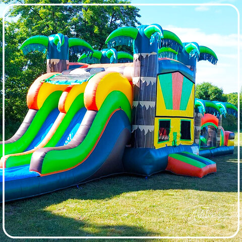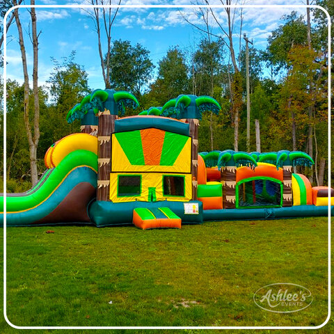 It's time to bring on the challenge, the excitement, and the fun! Book our Tropical Obstacle Course Combo Rental today and experience the thrill of competition, the joy of bouncing, and the boundless energy that will fill the air. Prepare for an adventure like no other and let the tropical celebration begin!