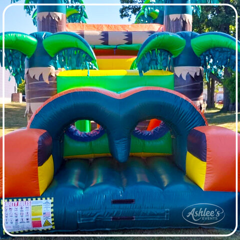 But that's not all! Our Tropical Obstacle Course Combo also includes a bouncy castle, adding an extra element of fun and thrill to the experience. After conquering the obstacles, guests can bounce and play to their heart's content, experiencing pure joy and laughter.